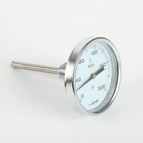 轴向型双金属温度计是一种测量中低温度的现场检测仪表。双金属温度计可以直接测量各种生产过程中的-80℃~+500℃范围内液体、蒸汽和气体介质温度。